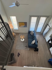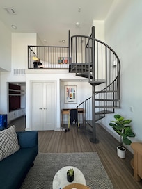 Staff was great. Layout of unit was cute, but a bit strange for me. Bed up in the loft, but you have to go down cold steel stairs to get to the bathroom. A TV and a ceiling fan would have been good in the loft. No soda/vending machines? Huge issue for me.